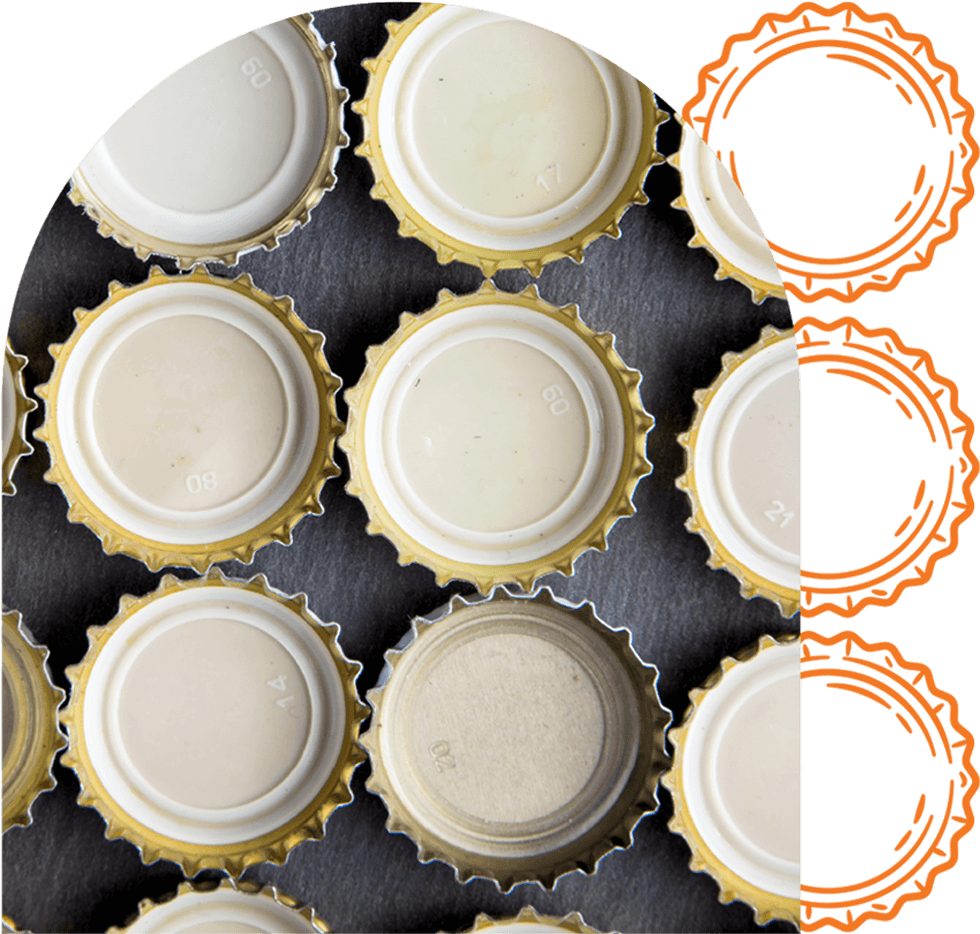 The caps are electrolytically tin-coated iron white sheet, and are available in a range of colours of designs. All closures are coated in a protective lacquer to ensure the integrity of the product stored with the glass container.